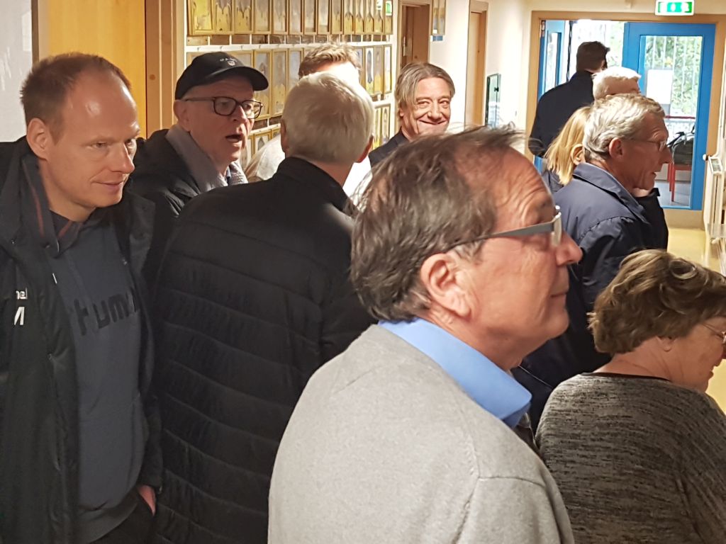 Taler ved både den nuværende formand Christian Barrett og den tidligere mangeårige formand Per Bjerregaard, mens Jim Stjerne Hansen lytter interesseret.