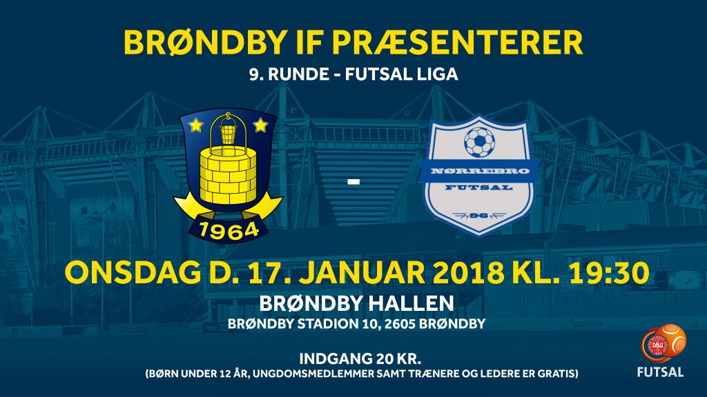 Futsal Liga kamp mod Nørrebro Futsal onsdag d. 17. januar kl. 19:30 i Brøndby Hallen