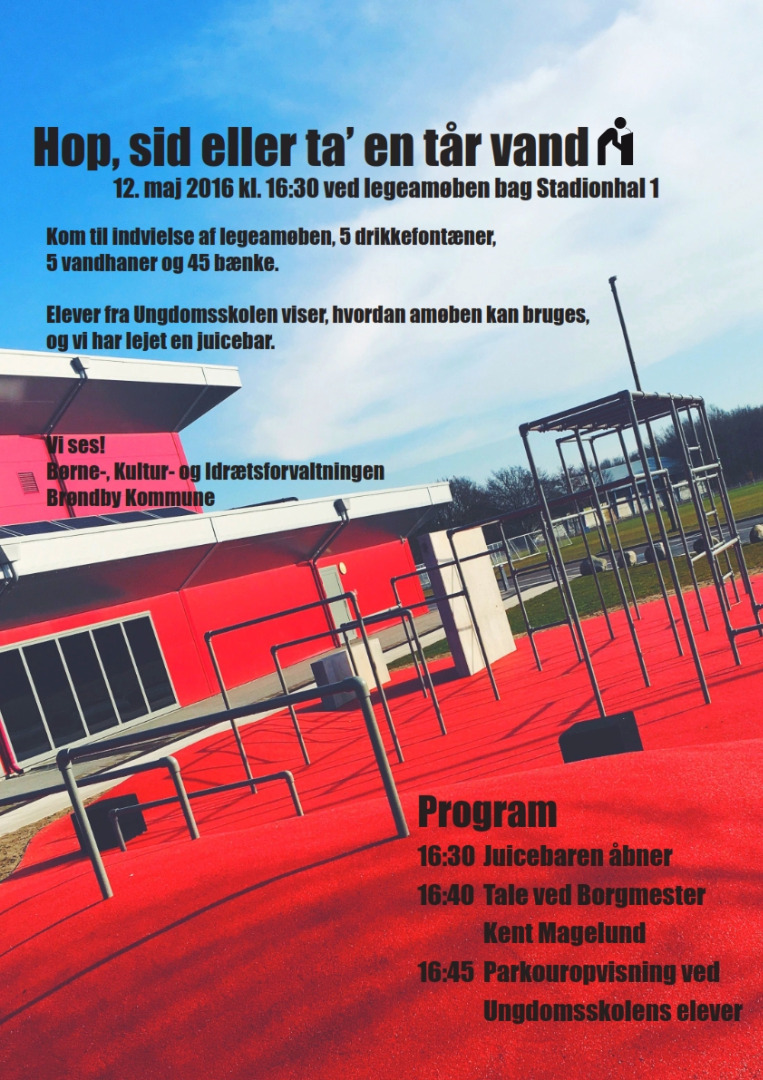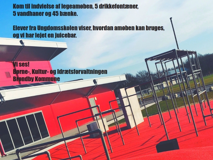 Kom til indvielse af legeamøben, 5 drikkefontæner, 5 vandhaner og 45 bænke bag Stadionhal 1.