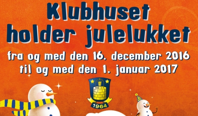 Klubhuset vil være lukket fra fredag d. 16. december 2016 til søndag d. 1. januar 2017, begge dage inklusive.