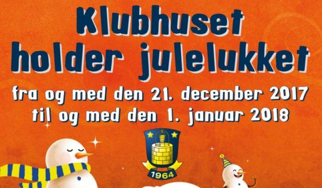 Klubhuset vil være lukket fra torsdag d. 21. december 2017 til mandag d. 1. januar 2018, begge dage inklusive.