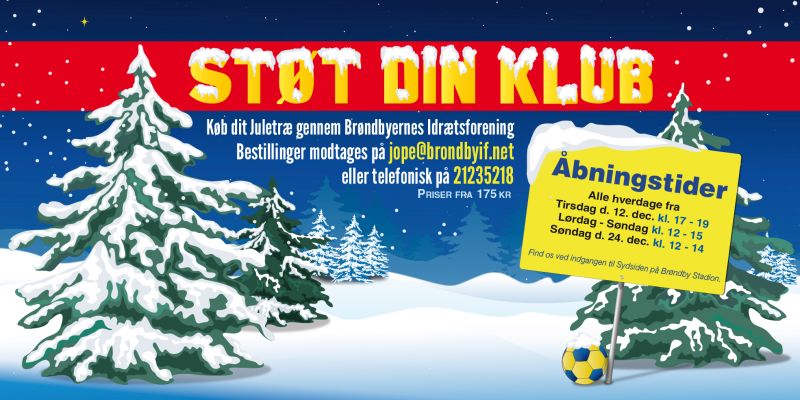 Igen i år sælger Brøndbyernes IF juletræer, til fordel for ungdomsafdelingen. Salget begynder tirsdag d. 12. december og fortsætter hver dag indtil juleaften. Igen sælges der fra indgangen ved Sydsiden.