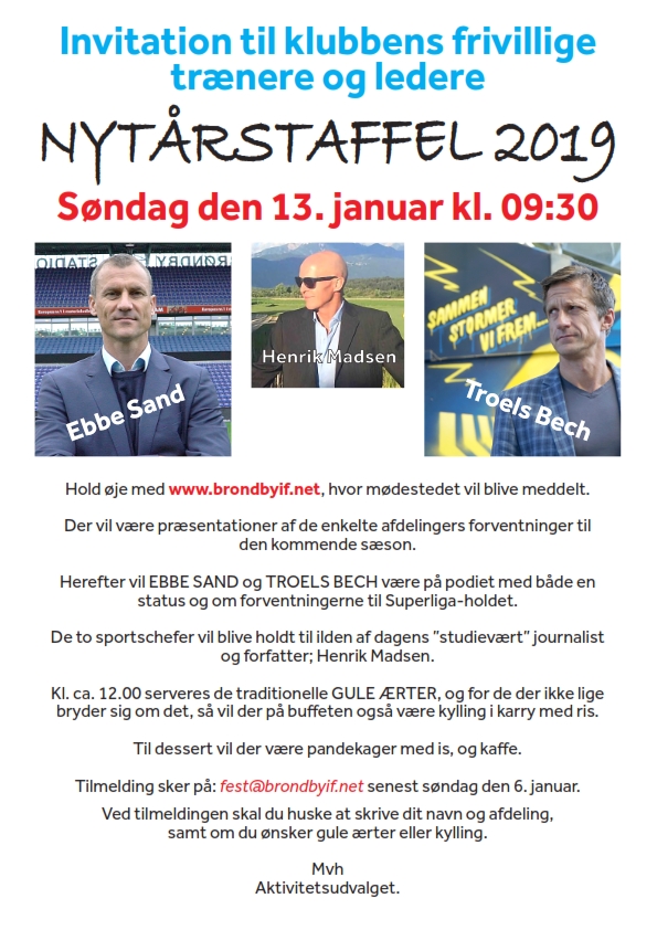 Invitationer til Nytårstaffel er på vej ud til alle frivillige trænere og ledere i Brøndbyernes IF.