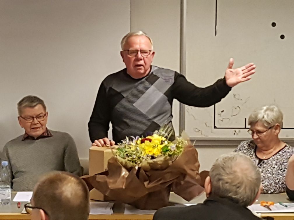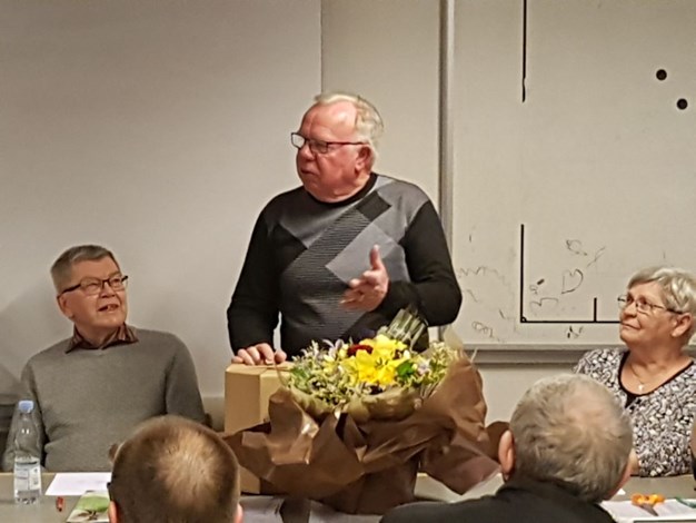 Og der var selvfølgelig blomster og andet godt til den afgående formand: