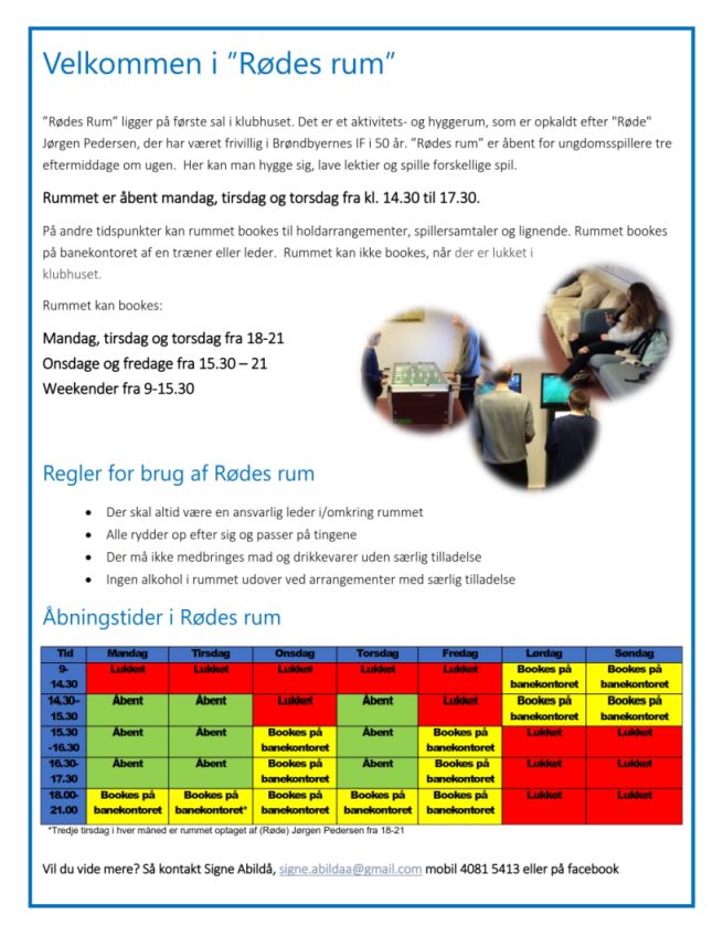 'Rødes Rum' er åbent for ungdomsspillere tre eftermiddage om ugen.