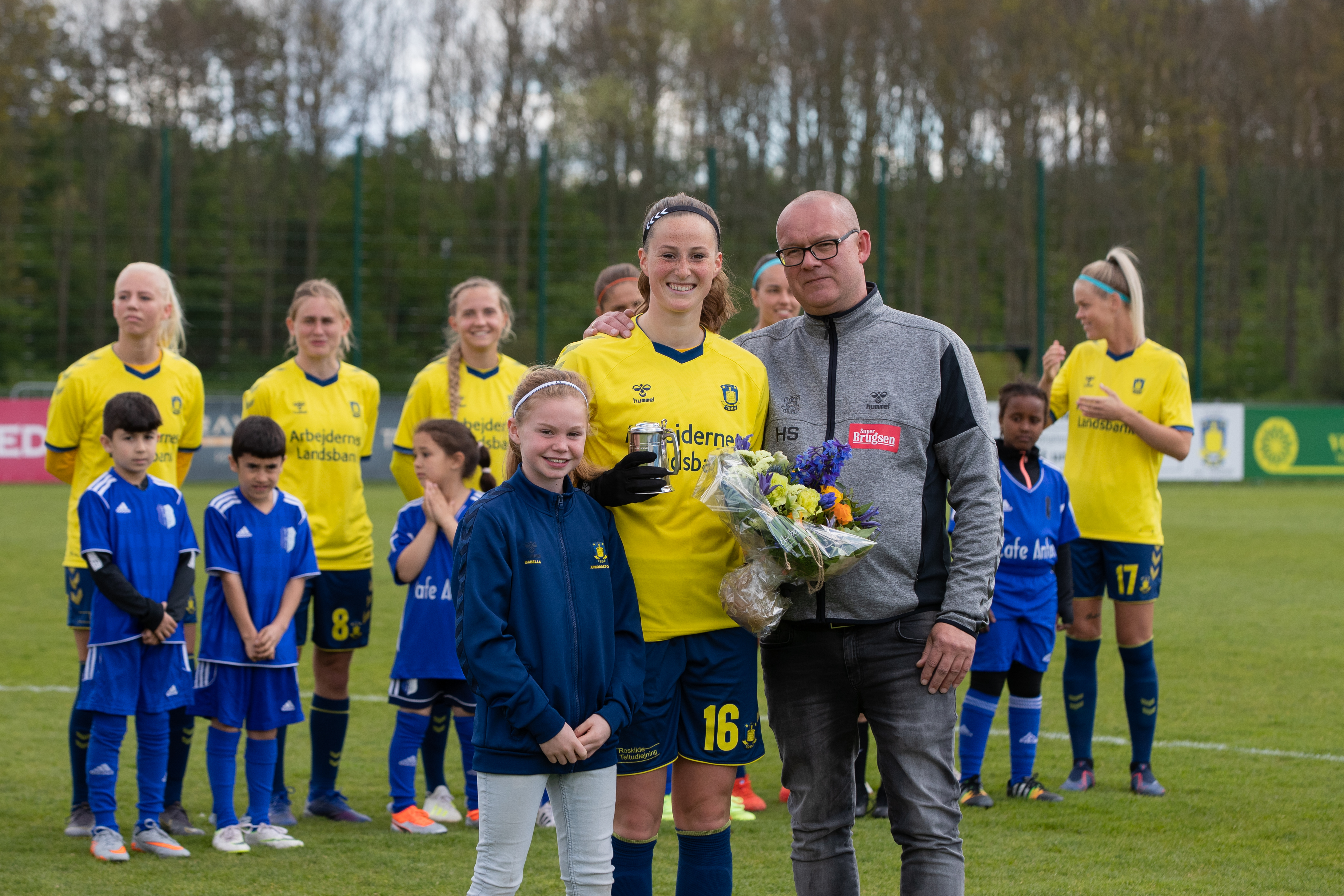 Inden kampen mod Kolding blev Nicoline Haugaard Sørensen hyldet for sin kamp nummer 100, som hun spillede mod BSF før påske. Nicoline har lige forlænget sin kontrakt med Brøndby, så det kan blive til mange flere kampe i den gule trøje for "Nico". Kæmpe tillykke til Nico - og til Brøndby!