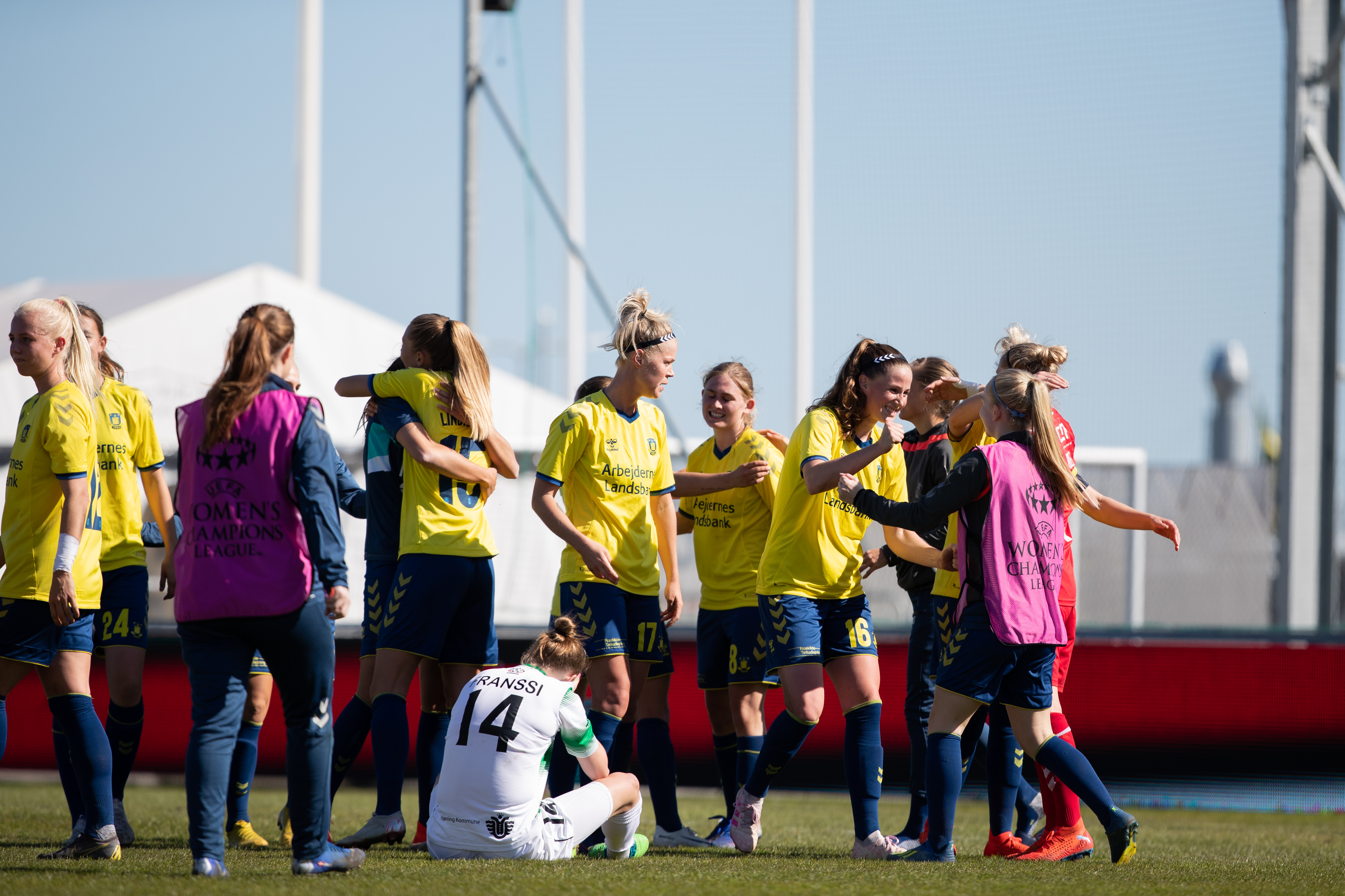 Tilbage til selve kampen, hvor Nicoline Sørensen lige efter udvisningen udnyttede en for kort tilbagelægning til at bringe Brøndby foran 1-0 - en stilling, der på trods af, at Brøndby kæmpede 10 mod 11, blev fastholdt helt til det 64. minut, hvor Fortuna fik udlignet. Brøndby var glade efter pointdelingen, mens Fortuna var skuffede over ikke at have kunnet udnytte,at de var en spiller i overtal i 85 minutter.