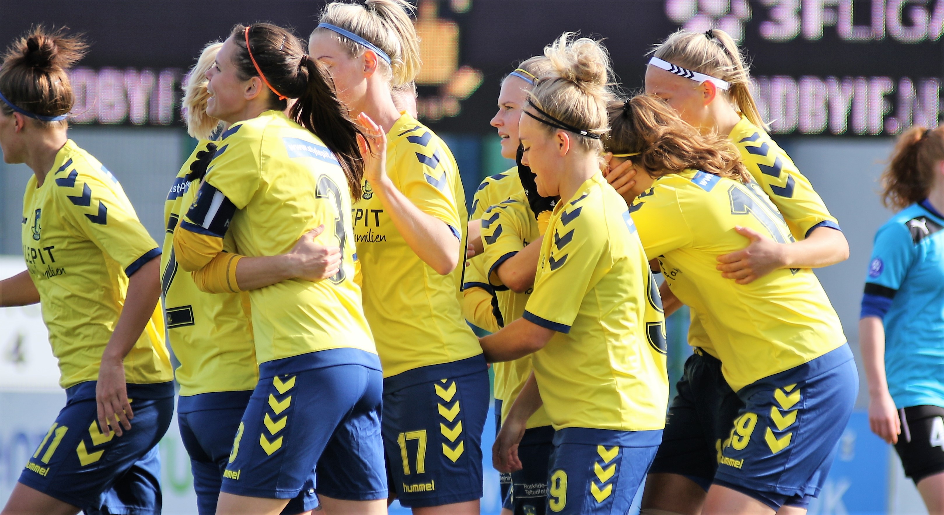 KoldingQ har ikke fået nogen specielt god start på slutspillet, og lørdag gik det så helt galt for koldingenserne, da de var på besøg hos os. Allerede ved pausen var Brøndby foran 5-0, blandt andet efter to mål af Nicoline Sørensen, og dominansen fortsatte efter pausen. Udover målene fra Nicoline Sørensen, var Nanna Christiansen, Simone Boye, Stine Larsen, Sofie Bloch og Rikke Sevecke på pletten for os.